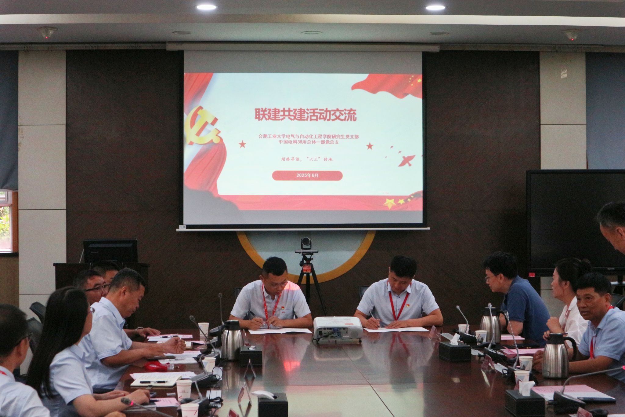 三方支部书记介绍了本支部在强化政治功能、提升组织活力、服务中心大局及发挥党员先锋模范作用等方面的体系与经验,校方和企业代表签署了支部共建协议。与会人员同上一节主题党课,集中观看了由电气学院拍摄的视频《不朽的流星》,此视频以学院杰出校友、38所优秀科技工作者、革命烈士陈秋华为原型,展现了陈秋华刻苦求学、拼搏奋进,将“小我融入大我”并为国防事业奉献终身的的感人故事。观影后,陈秋华生前老师和同事回忆了他求学和工作的点点滴滴,与会人员进行深入交流。